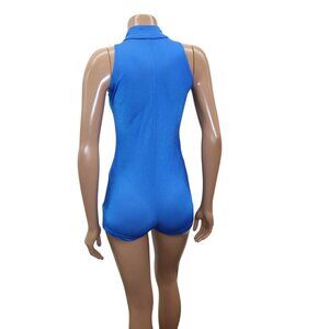 Y2K Zipper Front Playsuit Sleeveless Skinny Bodysuit Unitard Romper Shorts S-M