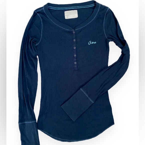 Excellent condition Y2K classic Aero long-sleeve with Aero logo embroidered and extra long sleeves, scoop neck.