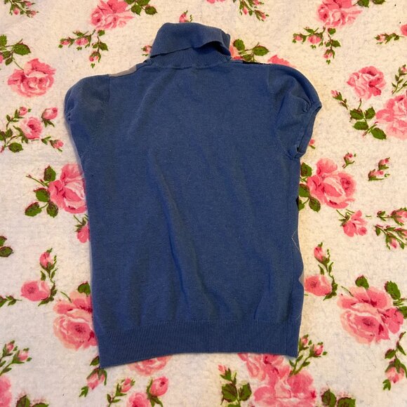 Y2K blue argile short sleeved turtleneck sweater shirt with puffed sleeve!