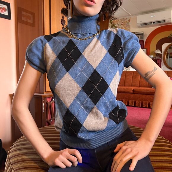 Tags: Y2K argile knitted shirt, bodycon argile, blue and black agrile, diamon knit turtleneck, puffed sleeved sweater, short sleeved turtleneck, Y2K short sleeved turtleneck, 2000s short sleeved turtleneck, Preppy y2K, paris hilton, jawbreaker, clueless, preppy, argile preppy top, Y2K knitted top, 2000s knitted top, puffed sleeve turtleneck, argile top, Y2K bodycon top, preppy Y2K shirt, vintage Y2K top, vintage Y2K turtleneck, scooby doo, monsters inc
