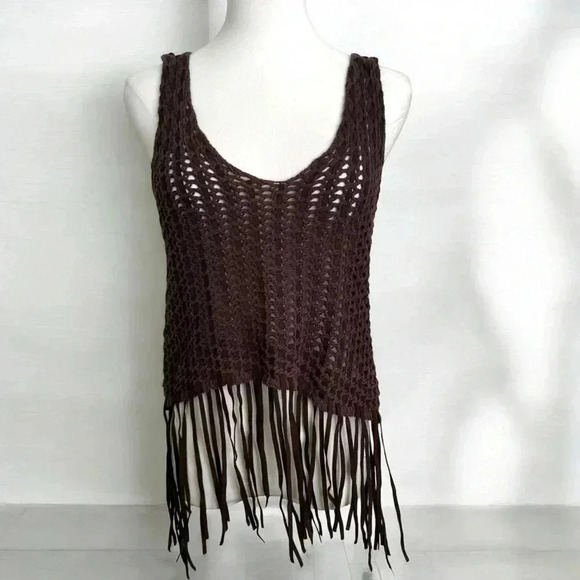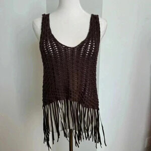 Y2K crochet western faux leather details top coastal cowgirl boho S