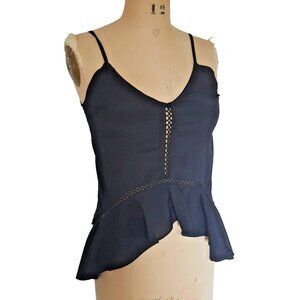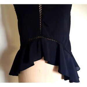 Y2K lack strappy ruffled tank top shirt XS with eyelet lace details