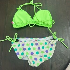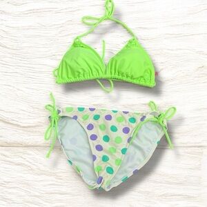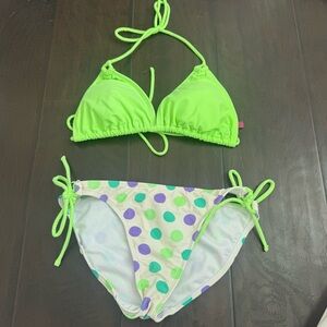 Y2K ladies bikini Set in Green and Polka Dot Beachy 2000s M/L