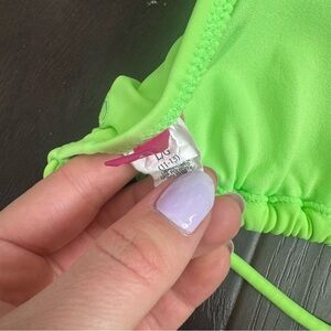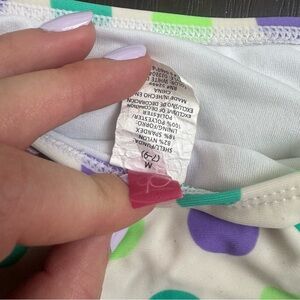 Brighten up swim time with this vibrant swimwear set. Featuring a lively green top and a playful polka dot bottom, it's perfect for fun in the sun.