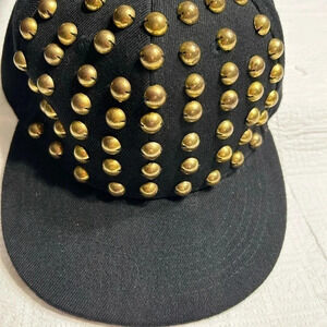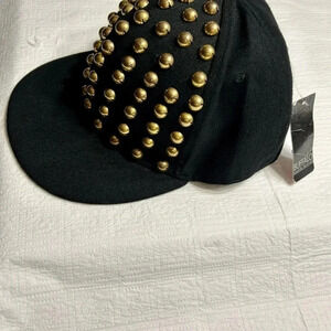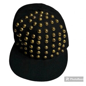 Y2K men black cap ,solid metal detail, gold colored , solid semi bead,punk