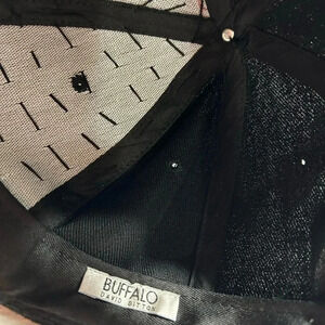 New condition with tags still on . This is a unique black cap , solid metal sewn from the inside . The back is very adjustable . Brand is Buffalo David Bitton ! You can really feel the quality . Cotton 65 per cent