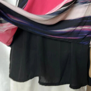 Beautiful bright asymmetrical striped top . Pink , white , black , violet ,Blue colorful blouse .