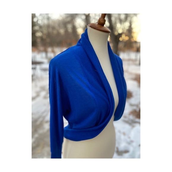 Y2K Blue Knit Cardigan Bolero Jacket Shrug Jersey Knit Sz XS