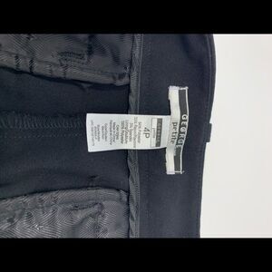 Size 4P on tag. Polyester, rayon, spandex shell with a satin poly lining.