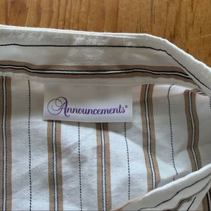 Button down. Light polyester and cotton blend. Smoke and pet free home. No stains or tears.