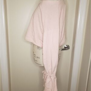 Light pink wide off the shoulder boat neck long adjustable bow tie poet sleeve sweater top with raw hems, by Mossimo.
