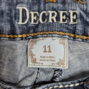 Vintage Y2K Decree Stylish Decorative Bootcut Cotton Blend Stretch Denim Flap Pocket Embroidered Stitched Button Up Pockets Detailed Emblem Buttons Medium Wash Faded Whiskering Relaxed Fit Stretch Low Rise School Funky Flashy Statement Casual Winter Fall Autumn Spring
