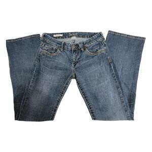 Y2k Boot Cut Med Wash Jeans Embroidered Flap Pocket Relaxed Denim Low Rise SZ 11