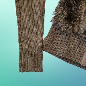 * Y2k brown cable knit/faux fur full zip cardigan, size S