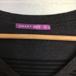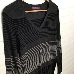 Y2k V-neck soft knit sweater small striped grey tones smart Set small