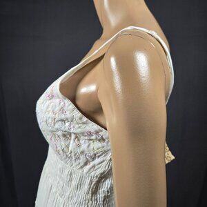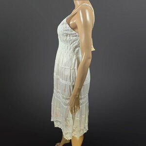 Y2k White Cotton Midi peasant dress Size XL Embroidered Crochet Lace Fairy Boho
