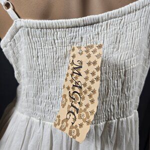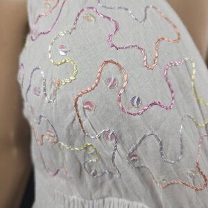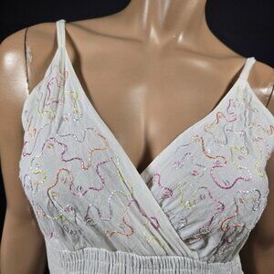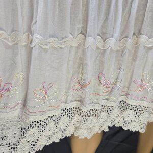 * Y2K white cotton sundress with pastel multicolor embroidery, sequins and crochet lace trim