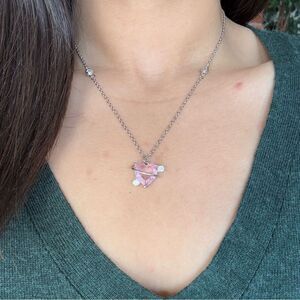 Y2k pink heart shape pink zirconia necklace on stainlesss steel silver chain