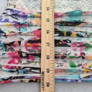 Y2k style white lace back multi color tiered layered cuffed sleeve top Small