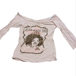 baby pink 3/4 sleeve off the shoulders Y2K era top