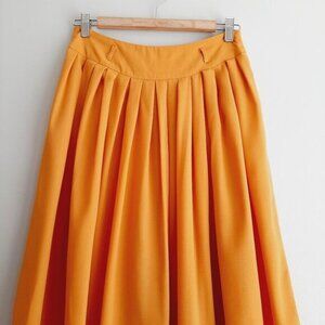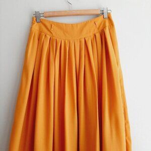 • Pleated flowy midi skirt in sunshine yellow with belt loops and side zipper closure. Fully lined.