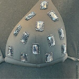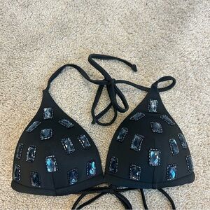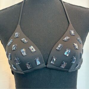 Yamamay black beaded gem jewelled embellished bikini top Sz 32B