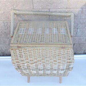 YARN BASKET w/ TWIST off LEGS Vintage Wicker Basket Craft Basket Crochet Craft