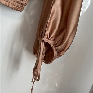 YAYA & CO Champaign Color Satin Effect Wrap Blouse Puff Sleeve, Size S