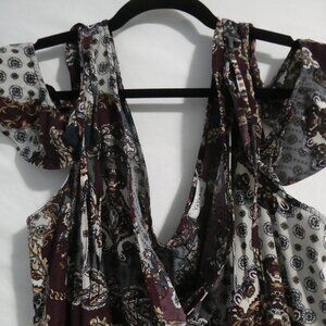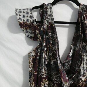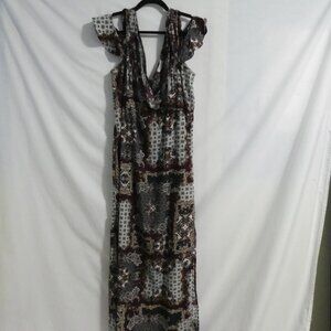 This elegant floral maxi dress features a beautiful mix of intricate patterns and soft fabric.