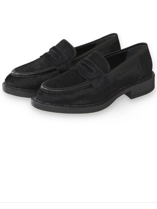 YAYA minimalist black leather pony hair slip on penny loafers EU 40