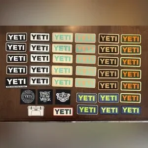 Vibrant YETI logo stickers in multiple colors. Ideal for personalizing your items. 41 total.