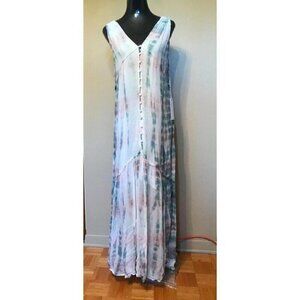 YFB Whimsical Tie-Dye Maxi Dress Medium Ethereal Button-Front Fairycore