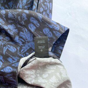 YIGAL AZROUEL BLACK BLUE WHITE ABSTRACT PATTERN SHORT SLEEVE SHEATH MIDI DRESS, this is a high end designer dress in a super thin, breathable, lightweight rayon & cotton blend - slightly stretch mixing blue and black colors on an abstract pattenr allover- white colorblock / panelled short sleeves - back zipper fastening - back vent - fitted / sheath - sleek - crisp - sophisticated with a burst of color yet mature with black heels for a first date, special night out at a fancy restaurant, feminine business workwear, cocktail event and more. Wearable all year long yet spring and summer favorite for the thin fabric. Made in USA.