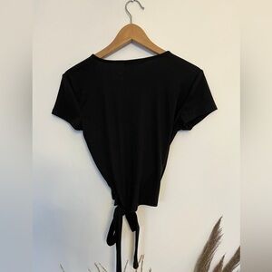 Chic black wrap blouse. Short sleeves with tie detail. Versatile and stylish size large EUC