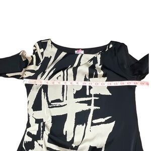 YOANA BARASCHI 100% Silk 3/4 Sleeve Midi Dress Abstract Print on Black US Sz 12