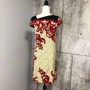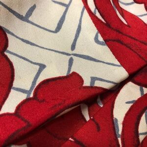 Very good condition - small hole on the left sleeve barely noticeable (pictured) and some minor runs (pictured) - barely noticeable due to print and size. Very soft. Gives a modern Chinese vibe. Hidden back zip. Asymmetrical neck line. Fully lined.