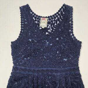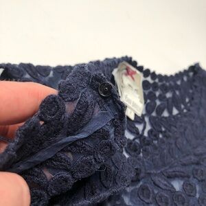 YOANA Baraschi BHLDN Navy Embroidered Floral Leaf Lace 100% Silk Cocktail Dress