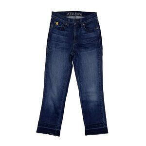 YOGA JEANS Chloe Classic Straight Jeans / Victoria Dark Wash Stretch Frayed 25
