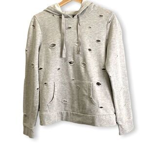 Allover distressed cutouts lend grunge-cool appeal to this classic lightweight hoodie, made from a soft cotton blend for lasting comfort. Kangaroo pocket. Drawstring hoodie. In excellent pre owned condition. See photos for detail and measurements. All clothing items I list come to you clean and to the best of my knowledge free of rips, tears and stains unless disclosed in the listing. From a smoke free, pet free home.