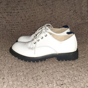 YOSUKE-White Faux Patent Lace-Up Oxfords-Sz 24.5/8-Very Good