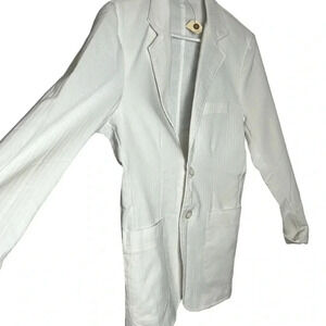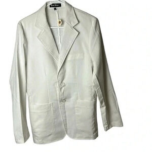 YOU NIQUE disco vibe White striped 2 button blazer .Embellish beads, notch