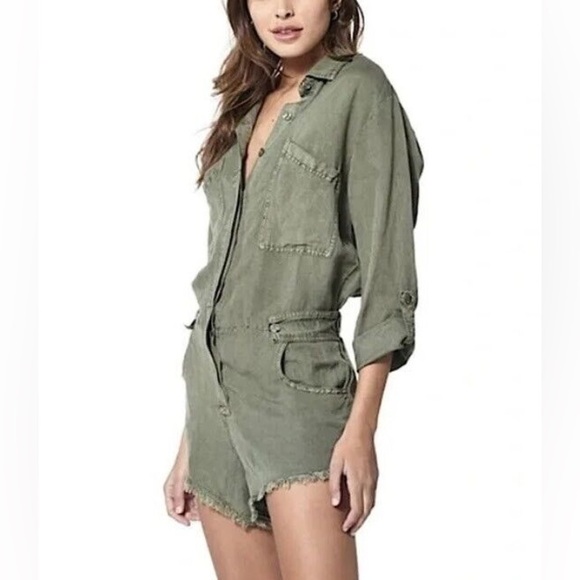 YOUNG FABULOUS AND BROKE | olive linen blend romper | size medium