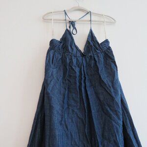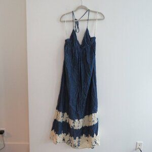 YOUNG FABULOUS & BROKE Denim Tie Dye Maxi Halter Dress - Women's Size S