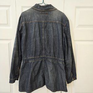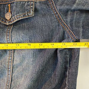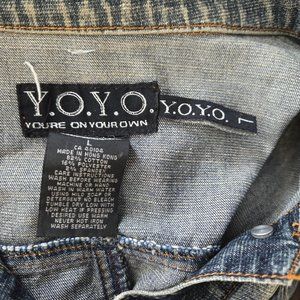 Very good condition distressed denim jacket. Stay in style with this Y.O.Y.O. Denim Jacket, perfect for any casual occasion. Made with a cotton blend outer shell material, this jacket is both comfortable and durable. The blue colour adds a pop of colour to any outfit and the denim fabric type gives it a classic look. This regular size jacket is designed for women and features a front button closure and two chest pockets. Dress it up or down, this versatile jacket is a must-have in any wardrobe.