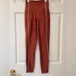 Elevate your workout or athleisure look with these YPB (Your Personal Best) leggings by Abercrombie & Fitch. Made in a rich rust color with sleek white vertical piping, these leggings feature a high-rise waistband, hidden inner pocket and a flattering seam design. Super soft and stretchy for a secure, sculpting fit.