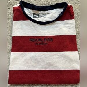 YR Young & Reckless Striped Youth XL (16) Short Sleeved T-Shirt, Preloved