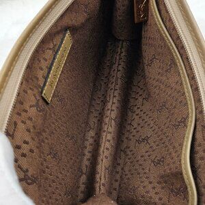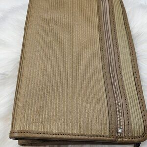 PVC Makeup clutch showcases neutral tones with multitonal hardware, leather trim and embellishments, a logo jacquard lining.