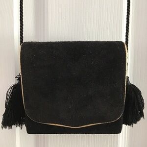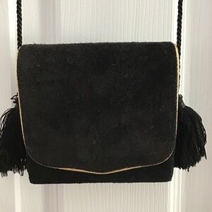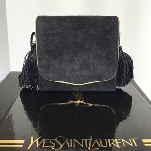 YSL Black Suede vintage mini crossbody bag with black tassels