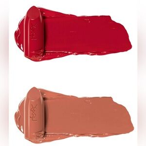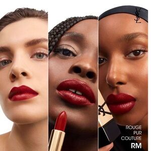 - Rouge Pur Couture Satin Lipsticks in nude and red shades are perfect for a no-makeup day or a festive holiday lip look. The lipsticks are highly pigmented, creamy and comfortable with intense hydration and antioxidant care in just one stroke.