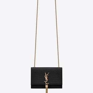 YSL KATE SMALL CHAIN BAG WITH TASSEL IN CROCODILE-EMBOSSED SHINY LEATHER